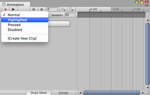 There is an Animation Clip pop-up menu to select the desired clip. Choose from "Normal", "Highlighted", "Pressed" and "Disabled".